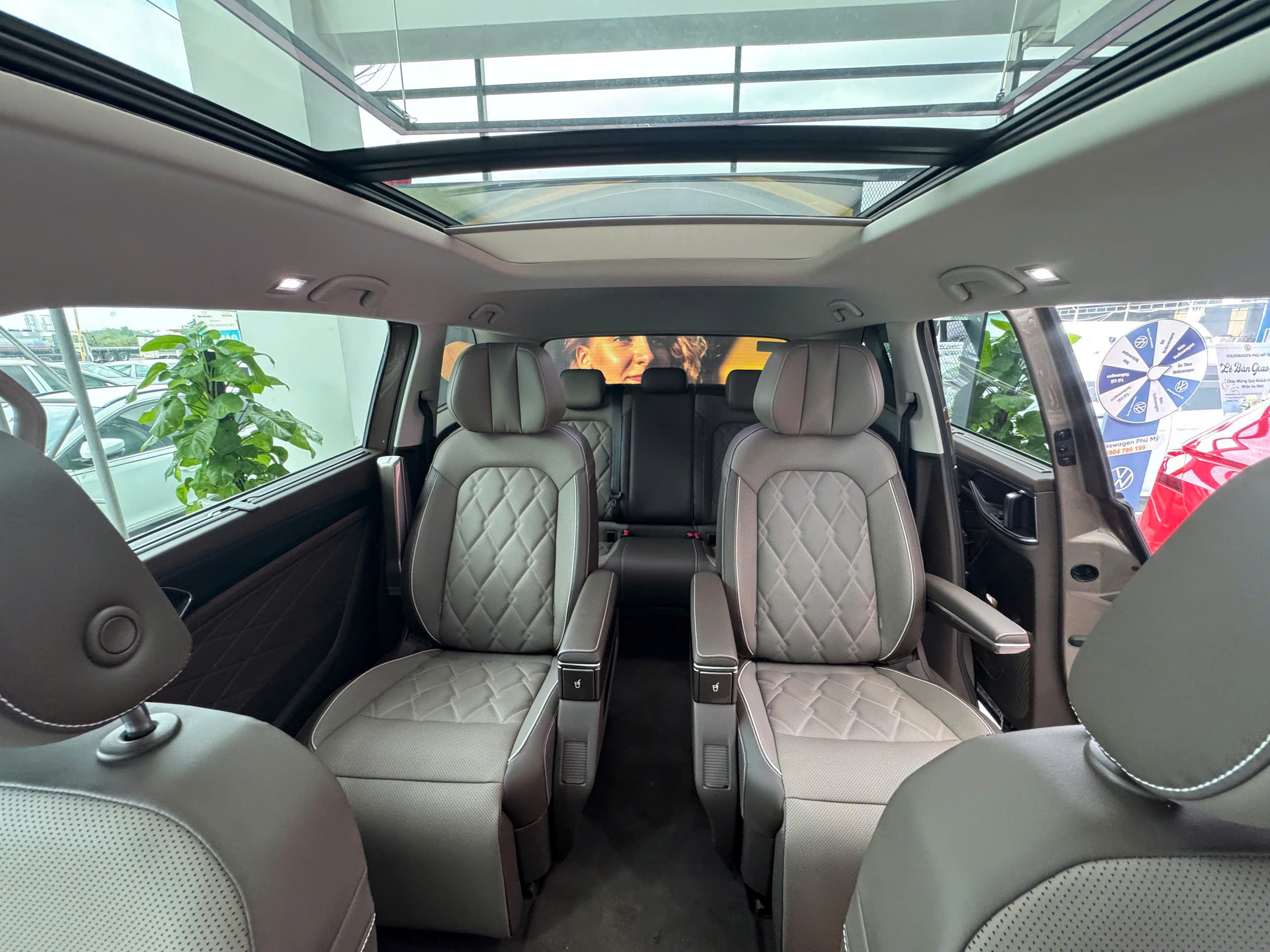 Ngoài ra, Volkswagen Viloran còn gây ấn tượng với nội thất bọc da và ốp gỗ tạo cảm giác sang trọng cùng dàn trang bị tiện nghi phong phú. Có thể kể đến một số trang bị nổi bật của xe như hàng ghế trước chỉnh điện, bảng đồng hồ kỹ thuật số 10,3 inch, màn hình cảm ứng trung tâm 12 inch, hỗ trợ kết nối Apple CarPlay/Android Auto, hệ thống âm thanh 8 loa, điều hòa tự động 3 vùng độc lập, sạc điện thoại không dây và cửa sổ trời toàn cảnh tiêu chuẩn. Ở bản cao cấp nhất, mẫu xe này có thêm chức năng sưởi/làm mát ghế trước, massage ở hàng ghế thứ hai và đèn viền trang trí nội thất 30 màu.