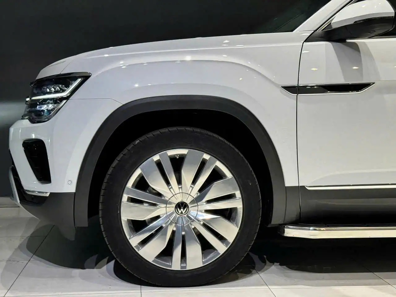 Phía đuôi xe cũng được tô điểm nhấn bởi các thanh viền mạ Chrome và dập nổi tên xe Teramont. Phía dưới cản sau là ống xả kép hình thang mạ crom được đặt bên dưới tấm cản sau. Trên cùng là ăng ten dạng vây cá mập, giúp tăng thêm tính thể thao cho dòng xe SUV này.